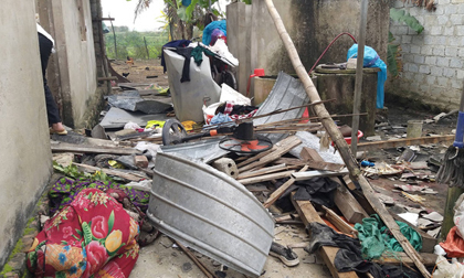 Tại hiện trường, gian bếp rộng khoảng 20m2 bị nổ tung phần mái nhà, bên trong mọi vật dụng bị hư hỏng, đổ nát. Một bức tường của gian nhà bếp bị nứt nẻ, có nguy cơ đổ sập.