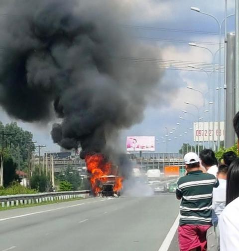 Xe container bốc cháy dữ dội trên cao tốc HLD