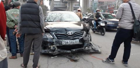 Chiếc Camry BKS 29A 58281 do một người đàn ông điều khiển đi với tốc độ cao đã đâm 3 ô tố và hất văng 3 xe máy trên đường Trần Phú trước cửa số nhà 15 đến ngã ba phố Lương Ngọc Quyến.