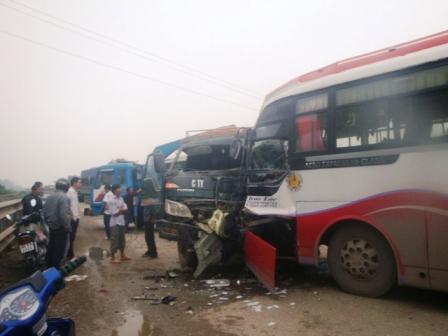 Khi đang sang đường, do không quan sát các phương tiện đang lưu thông ở phía trước, xe tải đã bị một xe khách đi ngược chiều đâm trực diện khiến cả hai xe bị bẹp dúm. Tai nạn xảy ra khiến quốc lộ 1A tắc nghẽn nghiêm trọng.