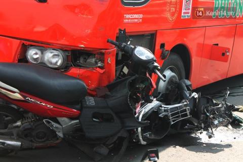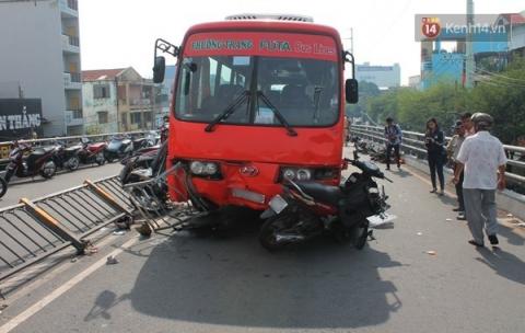 Vì tình huống xảy ra quá bất ngờ nên những phương tiện lưu thông gần xe không kịp xử lý, hàng loạt chiếc xe máy bị tông xếp chồng lên nhau và mắc kẹt vào gầm xe khách. Cú tông mạnh khiến nhiều người bị thương nặng, trong đó có một người phụ nữ rớt từ trên cầu vượt xuống đất.