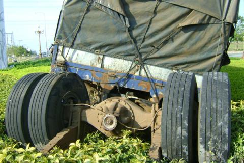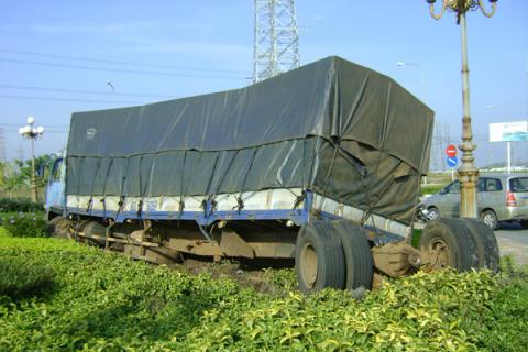 Anh Nhị, tài xế xe BS 81L - 5059, ngụ tại Gia Lai cho biết, vào lúc 1h30 sáng ngày 4/4/2012, khi chạy từ Cổng Xanh về Vòng xoay Trạm điện Phú Mỹ ở phường Hòa Phú, Trung tâm Thành phố mới Bình Dương thì anh bị lạc tay lái do ngủ quên, nên xe đã lao thẳng lên vòng xoay, 4 bánh xe đứt lìa khỏi thùng xe.