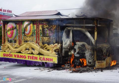 Mọi người ngồi phía sau lập tức di chuyển chiếc quan tài và một số đồ đạc xuống đường. Chỉ ít phút sau, ngọn lửa bao trùm phần cabin ôtô, cột khói bốc cao hàng chục mét.