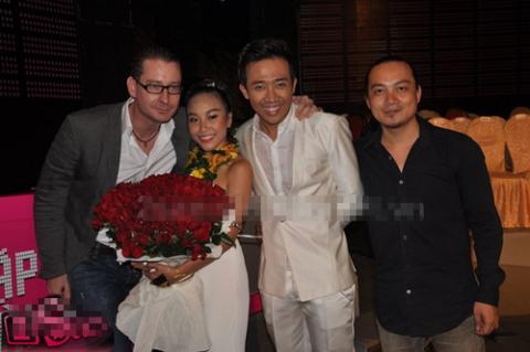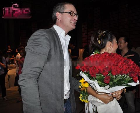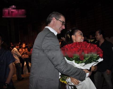 Chồng sắp cưới của Đoan Trang dành tặng cô một bó hoa hồng rất to khi chiến thắng ở cuộc thi Cặp đôi hoàn hảo |