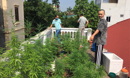 Một trường hợp trồng cây cần sa vừa phát hiện trồng trái phép trên nóc nhà