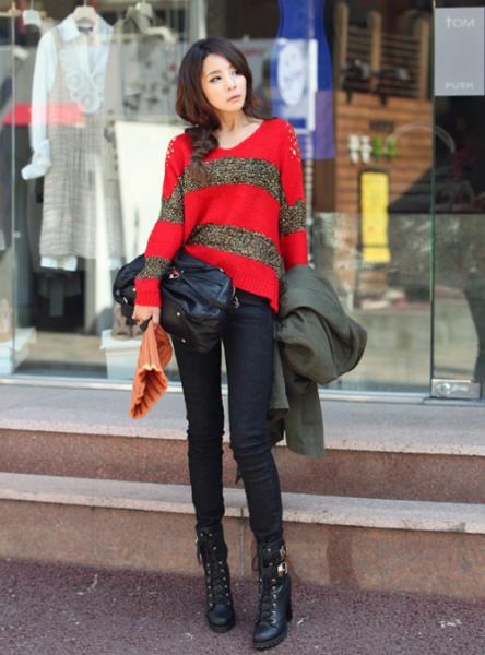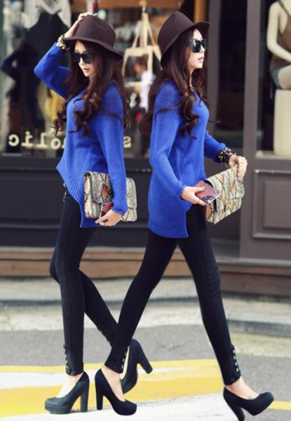 Màu sắc của áo đã nổi bật và bắt mắt, bởi vậy chọn quần jeans hay dáng quần skinny đi cùng bạn nên chọn tông màu tối hoặc màu sắc nhã nhặn