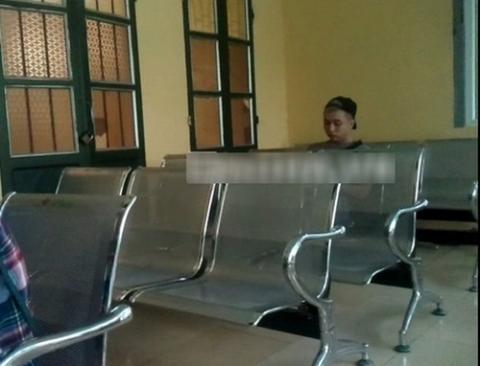 Yanbi ngồi hàng ghế sau cùng tại nơi làm thủ tục nhận lại xe máy.