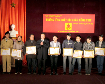 UBND thành phố Yên Bái đã tặng giấy khen cho 17 cá nhân tích cực tham gia hưởng ứng phong trào hiến máu tình nguyện