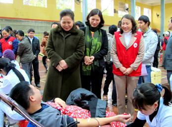 Đồng chí Ngô Thị Chinh - Phó chủ tịch UBND tỉnh, Trưởng ban vận động Hiến máu tình nguyện tỉnh thăm hỏi động viên người tham gia hiến máu tình nguyện